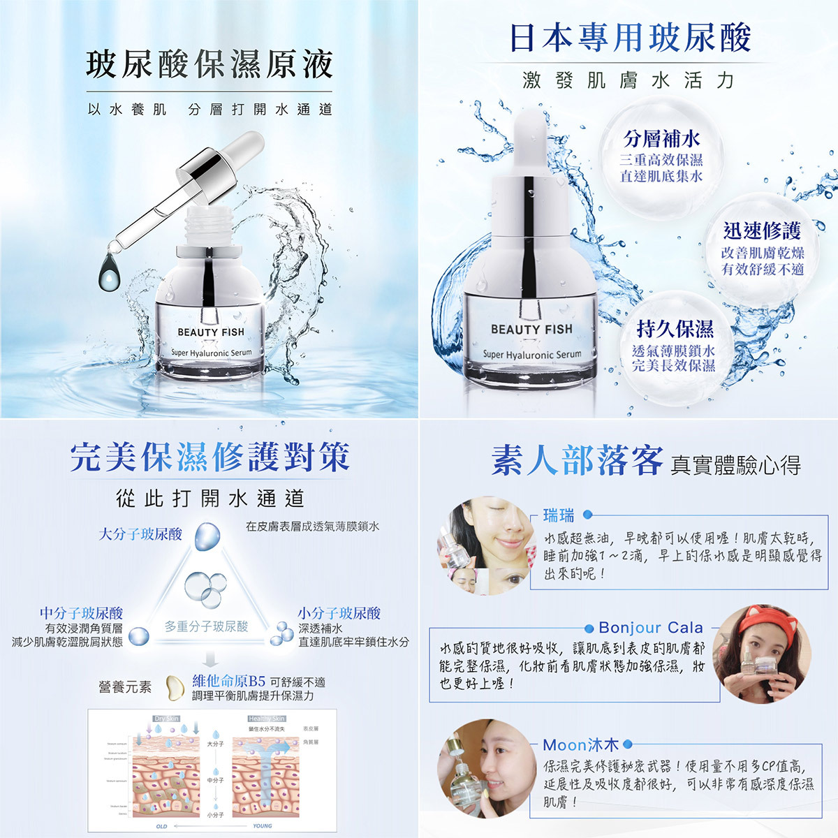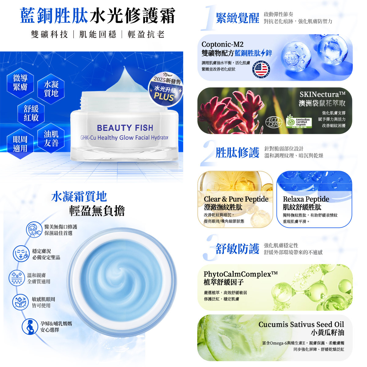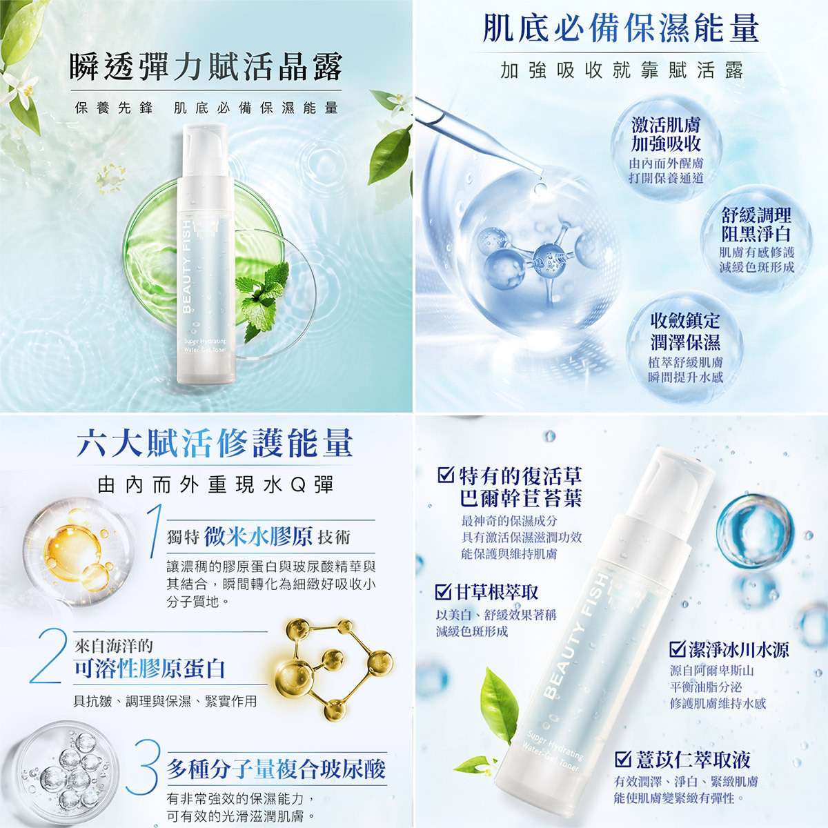 結合高效保濕玻尿酸、活性膠原與多重植萃精華,能瞬間為肌膚注入水分與彈力,使乾燥緊繃感迅速舒緩。活菌與胜肽能量同步啟動肌膚修復機制,加速角質代謝、改善暗沉與粗糙,使膚觸細緻平滑。雙礦藍銅與蜂毒胜肽進一步強化肌底防禦力,淡化細紋、緊緻輪廓,讓肌膚在日夜間維持穩定水光狀態。