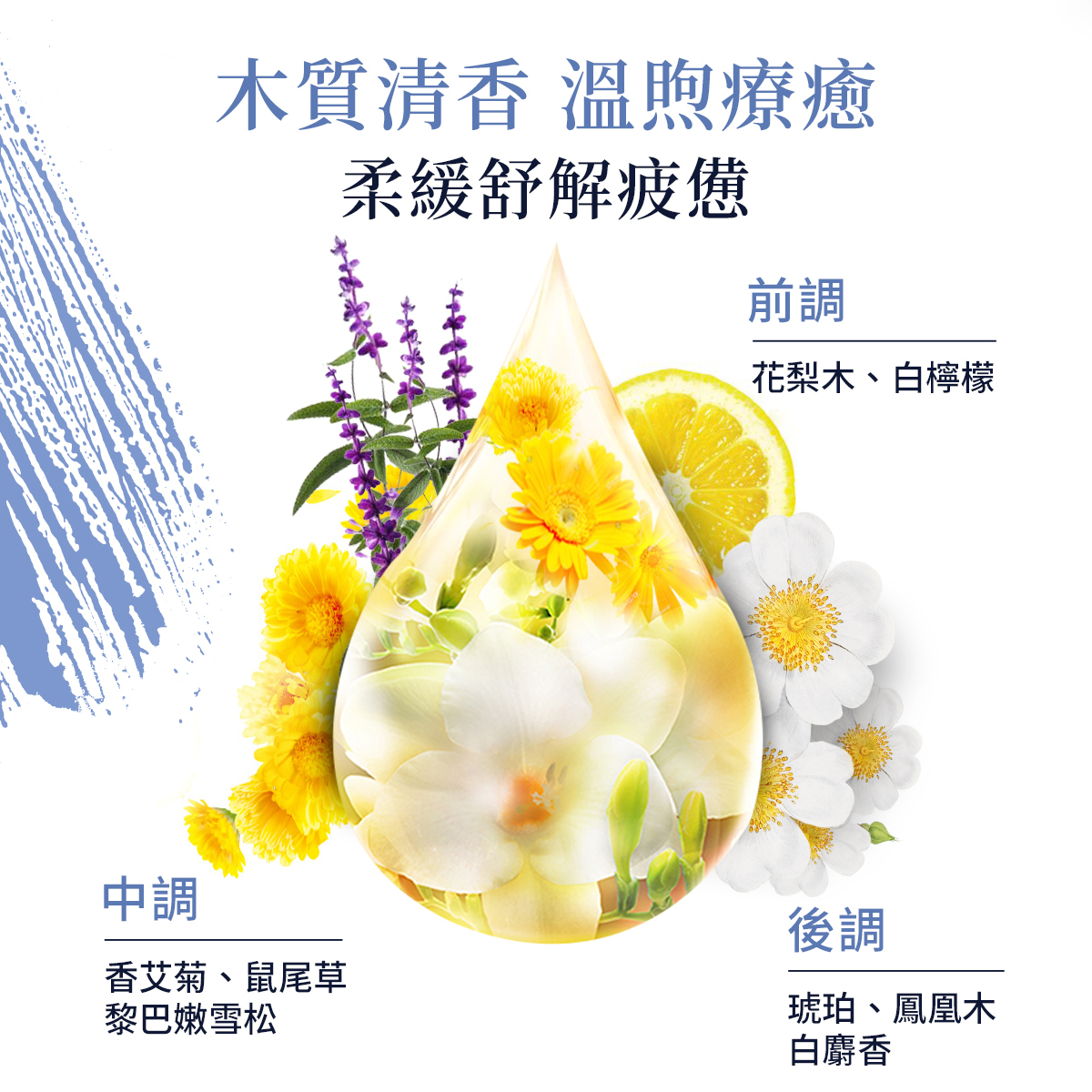 以中性花果芬芳做為靈感,伴隨著清新的香草、檸檬與木質香氛,溫暖中帶給人神清氣爽的舒適感受。多重保濕草本精華配方結合摩洛哥堅果油與富含維他命E的荷荷芭油,增強肌膚的抗氧化力與保水力;維生素原B5與蘆薈萃取可深度滋潤肌膚,保持肌膚彈力、透出健康光澤,沐浴後肌膚不再乾燥緊繃。