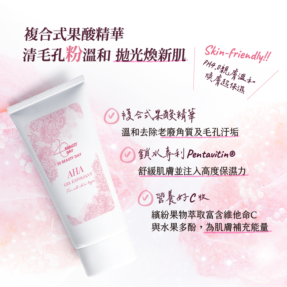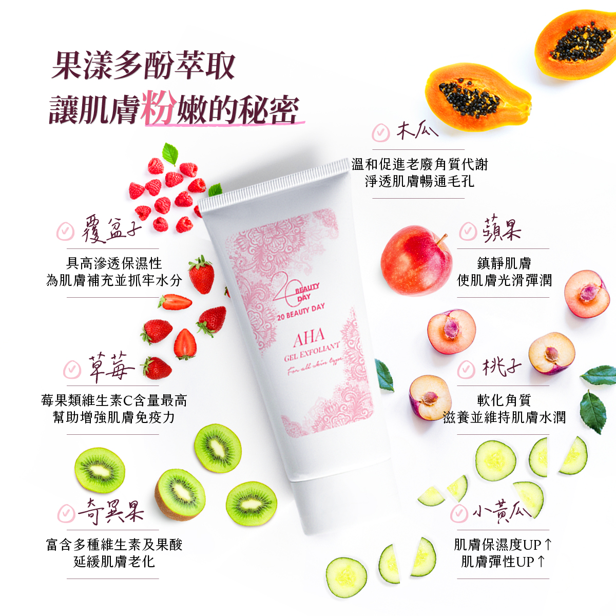 AHA天然果酸萃取、Pentavitin®鎖水磁石 |