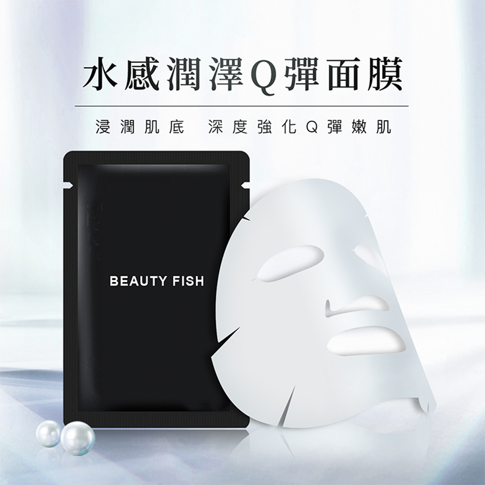 BEAUTY FISH®水感潤澤Q彈面膜添加數10種生物工程技術萃取的植物精萃,以多重分子玻尿酸與膠原蛋白為基底,搭配複合型棕櫚脂類胜肽協同增效,幫助肌膚提升水潤保濕感,強化肌底彈力,使肌膚Q彈細緻,展現高效彈嫩的透亮光澤。 |