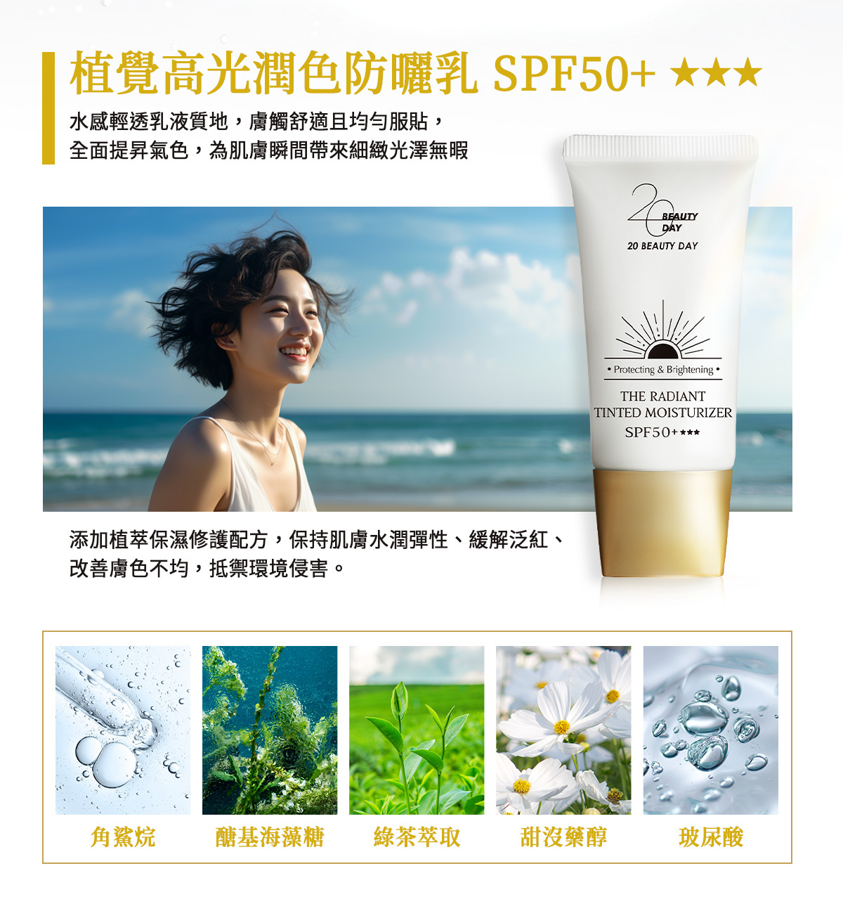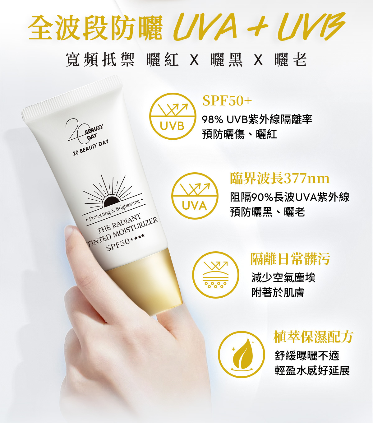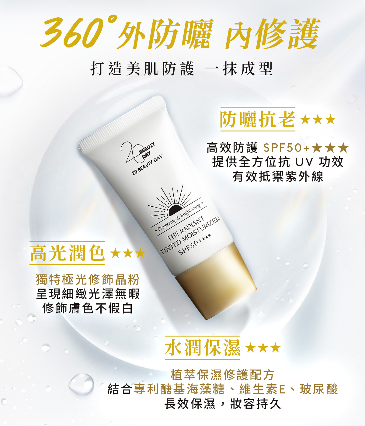擁有SPF50+★★★的高效防護,提供全方位抗UV功效,有效抵禦紫外線,蘊含植萃保濕修護配方,隔離日常髒污並維持長效保濕狀態;水感質地結合極光修飾晶粉,舒適膚觸且均勻服貼,全面修飾、提亮膚色,為肌膚瞬間帶來細緻光澤無暇感。